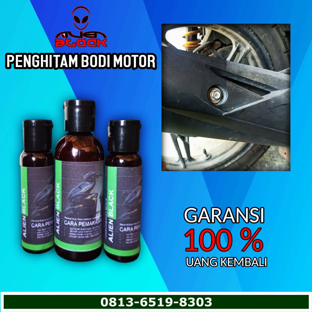 ALIEN BLACK diformulasikan untuk menjadi penghitam body motor dan mobil dengan hasil HITAM natural dengan efek daun talas.